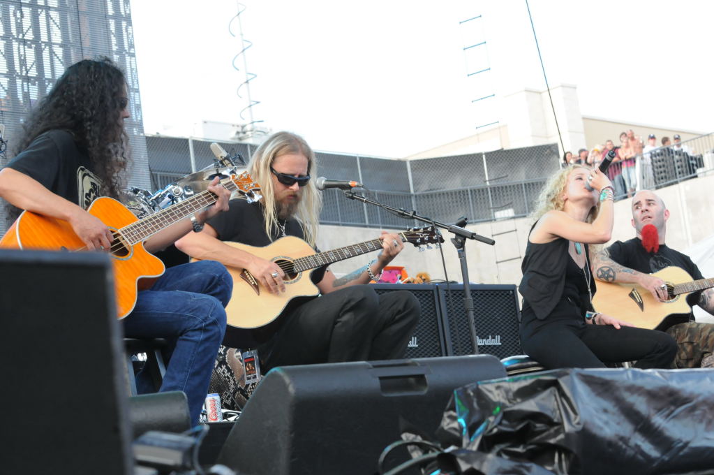 Description: Dimebag Tribute at Ozzfest 2008, Pizza Hut Park, Frisco, Texas - 08/09/08 - Scott Ian, Pearl Aday, Jerry Cantrell, Lars Ulrich, Mike Inez perform the Pink Floyd song Wish You Were Here - photos by Jeff Barringer - Club Kingsnake Staff Photographer - Photos shot with Nikon D300 and Nikkor Lenses