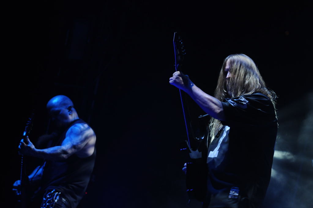 Description: Slayer at AT&T Center, San Antonio, Texas, 09/25/10 Second night of American Carnage Tour North America, second leg - photo by Jeff Barringer staff photographer.