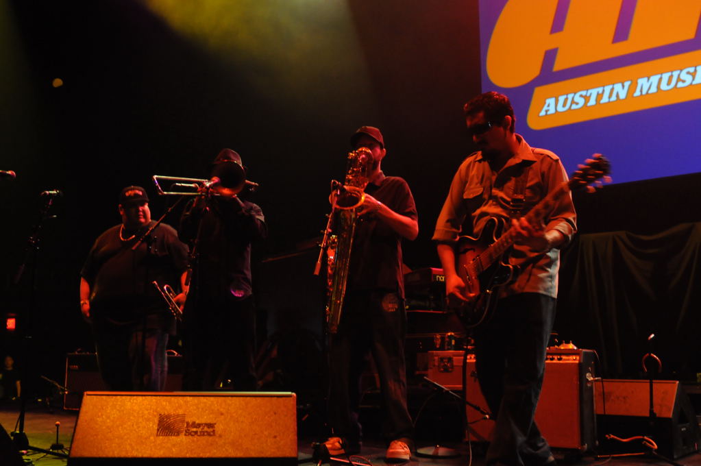 Description: Brownout performs at the AMP Launch Party at ACL Live at the Moody Theater, Austin, Texas March 31, 2011 - photo by Jeff Barringer.