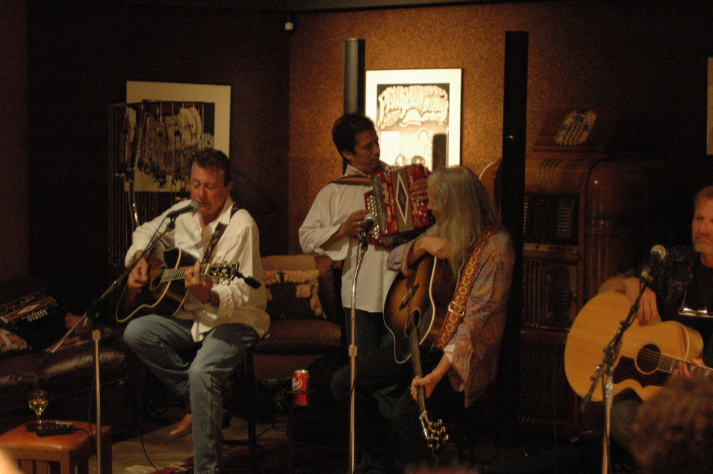 Description: The Flatlanders (Joe Ely, Jimmy Dale Gilmour, Butch Hancock, with accordionist Joel Guzman) at a house concert Austin, Texas on 6/9/07 - photos by Jeff Barringer staff photographer - Photos taken with Nikon D70 and 50mm f/1.4D AF Nikkor