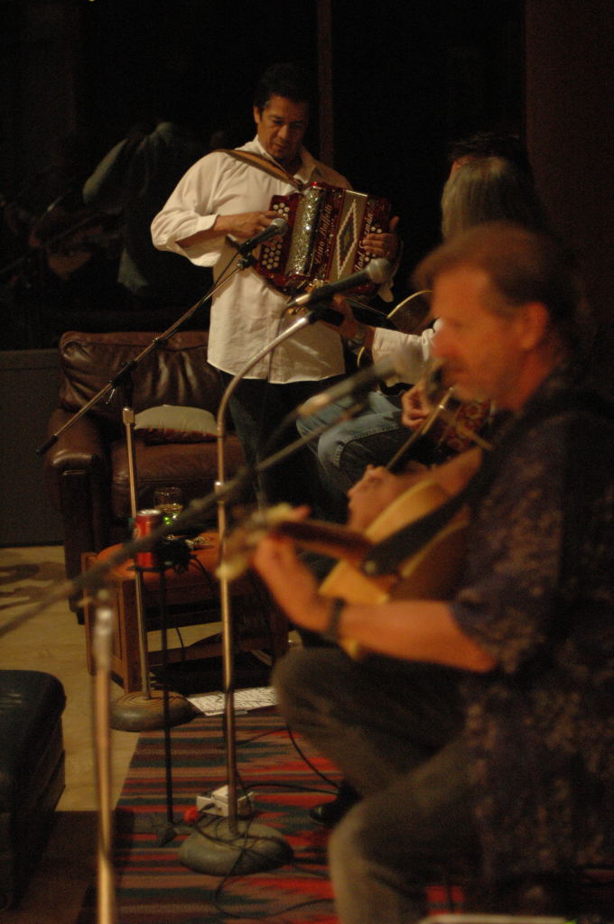 Description: The Flatlanders (Joe Ely, Jimmy Dale Gilmour, Butch Hancock, with accordionist Joel Guzman) at a house concert Austin, Texas on 6/9/07 - photos by Jeff Barringer staff photographer - Photos taken with Nikon D70 and 50mm f/1.4D AF Nikkor