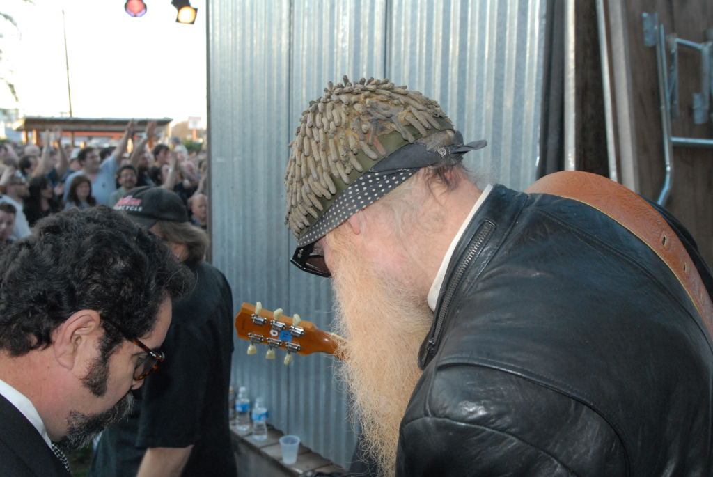 Description: Billy Gibbons of ZZ Top walkon during Roky Erickson & The Explosives set at the Roky Erickson Ice Cream Social Benefit for Health Alliance for Austin Musicians (HAMM) during SXSW 2008 03/13/08. Billy signed 2 Gibson guitars, one to Austin and one for the Gibson showroom in Austin. - photos by Jeff Barringer - Staff Photographer - Photos shot with Nikon D300 and D200 and Nikkor and Sigma Lenses