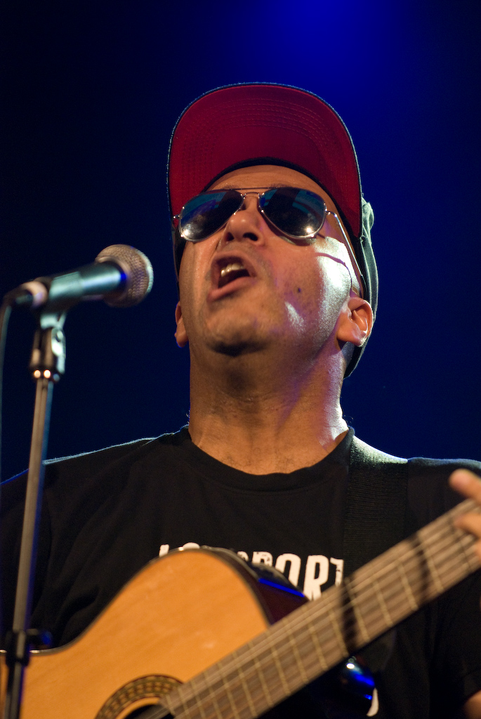 Description: The Nightwatchman (Tom Morello) at the Body of War Showcase. March 13, 2008. SXSW 2008. photo by clint gilders - staff photographer